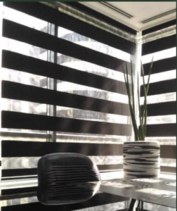 A Cortina Rolo Stillo é produzida com duas faixas de tecido diferentes, uma translúcida e outra opaca que criam um magnífico movimento quando a peça é recolhida. A base deslizante permite que os tecidos se intercalem oferecendo um efeito lúdico tornando o ambiente mais agradável.